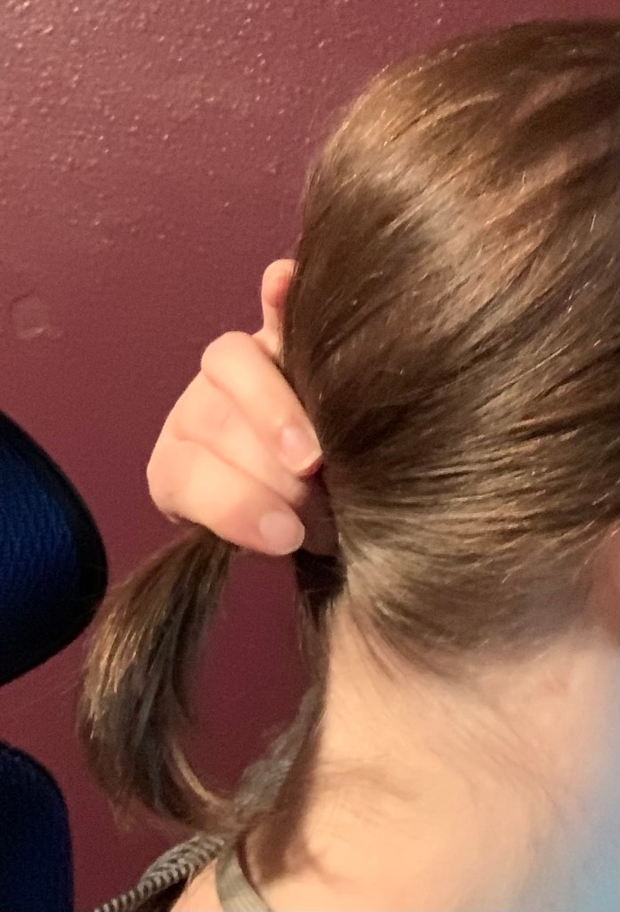 Here, have a look. See how tiny that ponytail is? Sheesh.